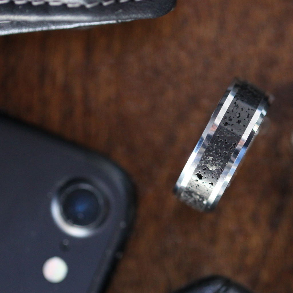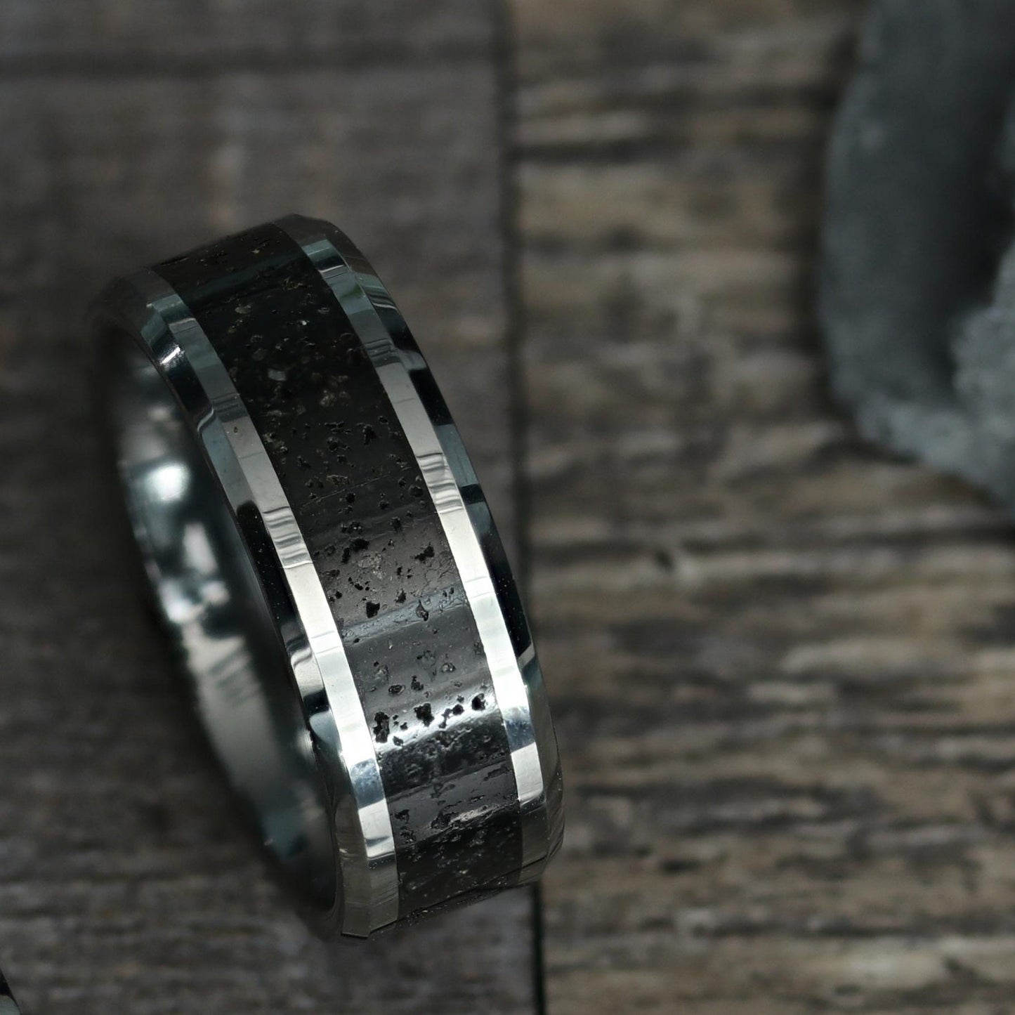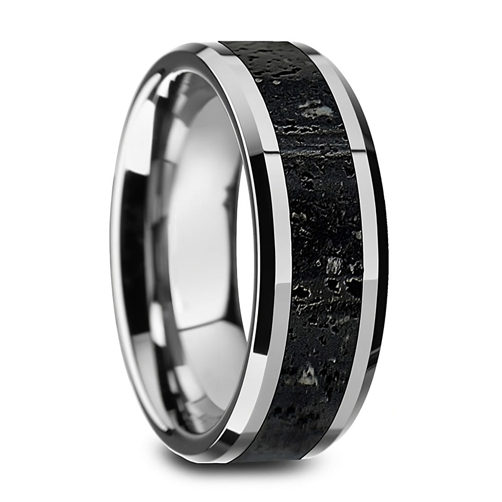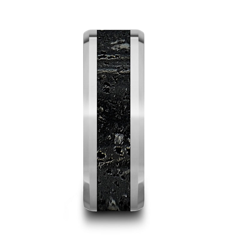 Tungsten Men's Wedding Band with Lava Rock Inlay
