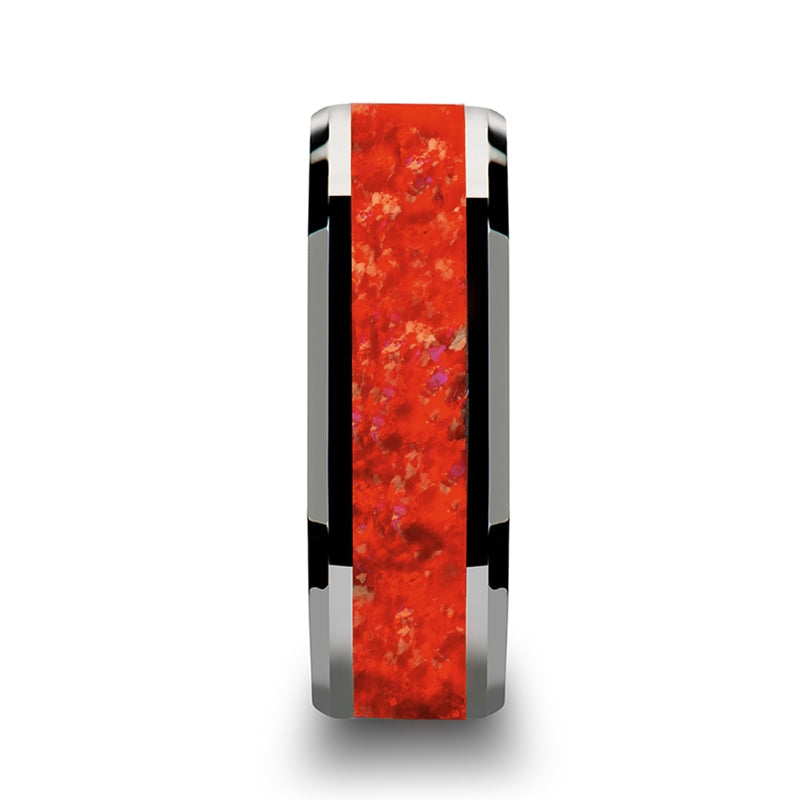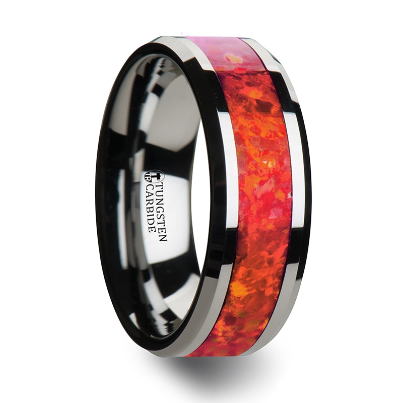 Tungsten Men's Wedding Band with Red Opal Inlay