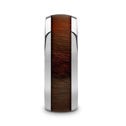 Tungsten Men's Wedding Band with Mahogany Wood Inlay