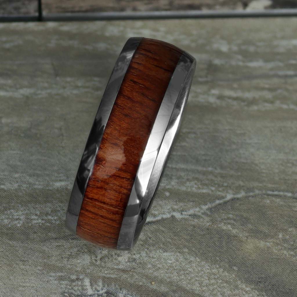 Slightly domed to give it character and a sense of symmetry, this Tungsten carbide Rose Wood-Inlaid Polished Finish Men's Domed Wedding Ring stands as a proud symbol of two coming together as one. Where other rings have masculine woods for the masculine look, this ring has a wood type that is considered to radiate feminine energy on it. And that is not by oversight; this is deliberate symbolism of the importance of recognizing the distinct energy of both the man and the woman in the marriage. Any man who wears this not only symbolizes his love, he conveys his respect to let her shine through him.