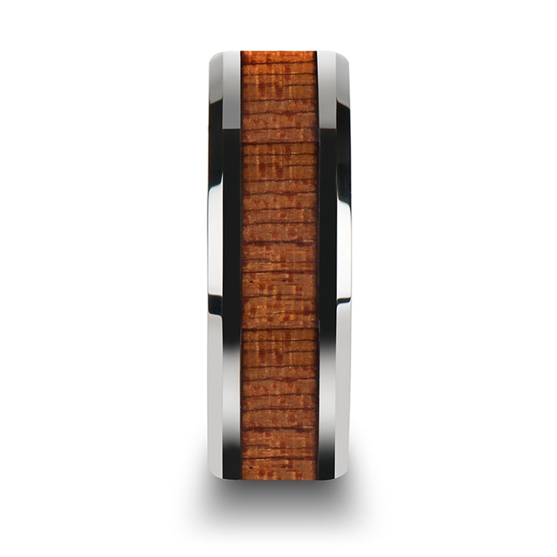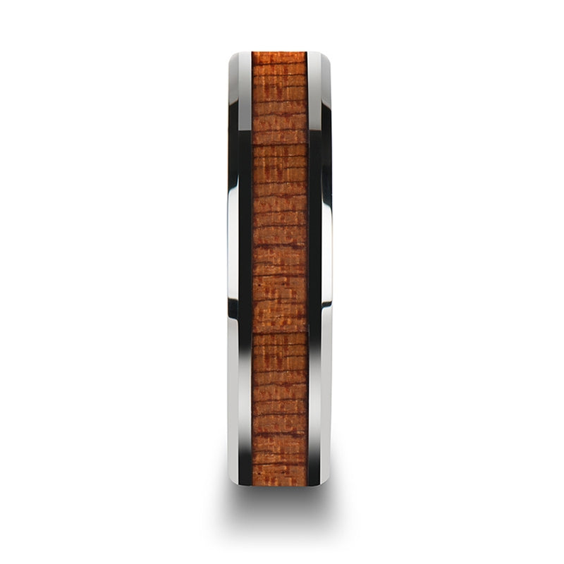 Tungsten Men's Wedding Band with Mahogany Wood Inlay