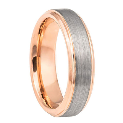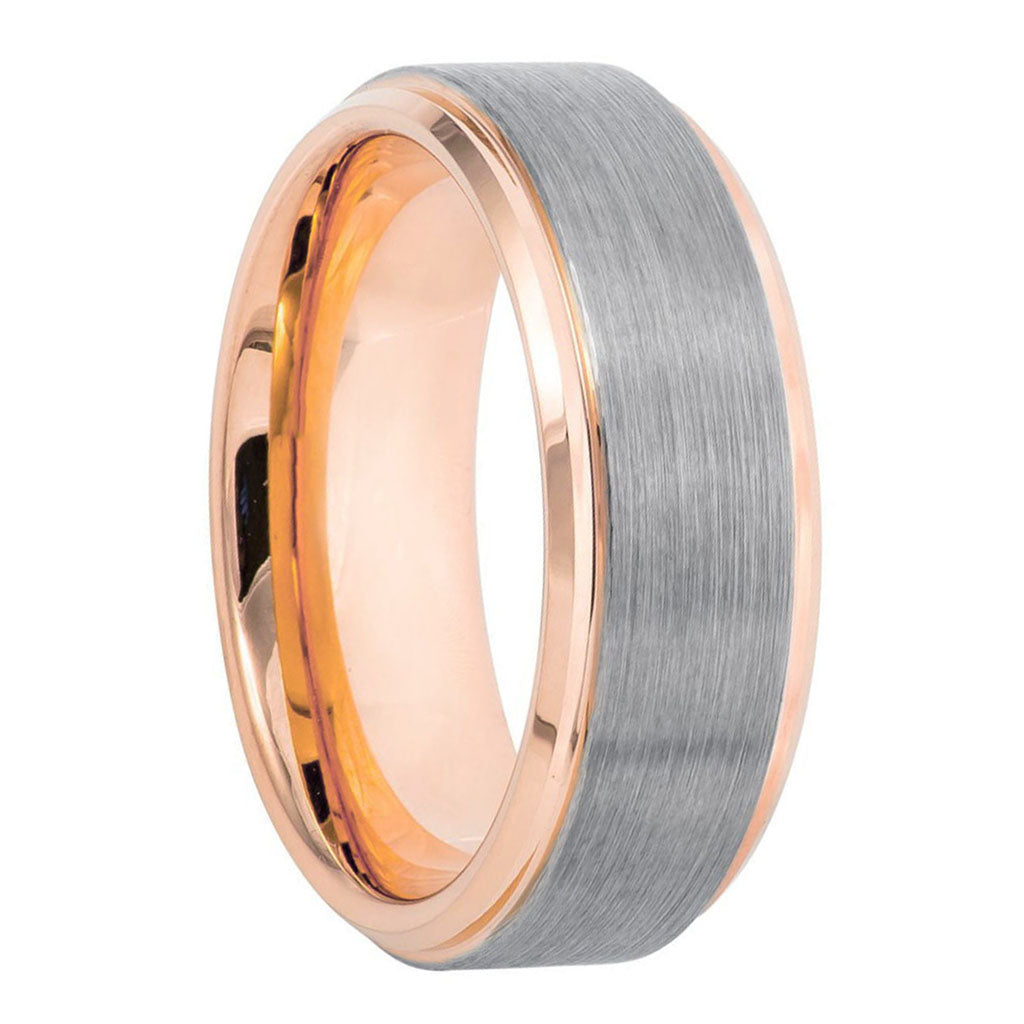 Tungsten Men's Wedding Band with Rose Gold Interior & Beveled Edges