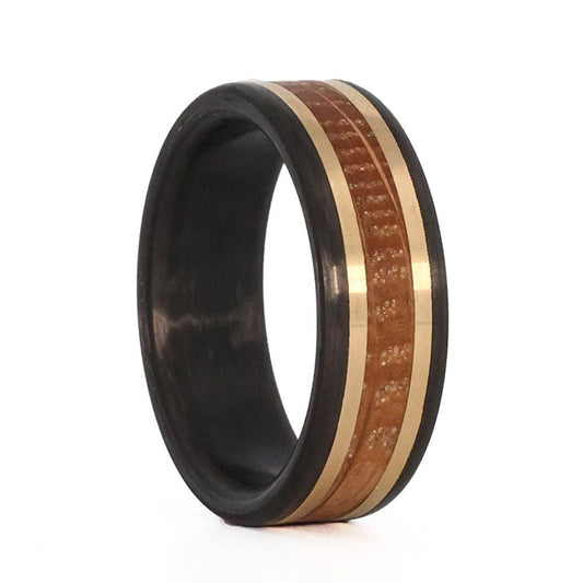 Twill Carbon Fiber and Whiskey Barrel Wood Men's Wedding Band