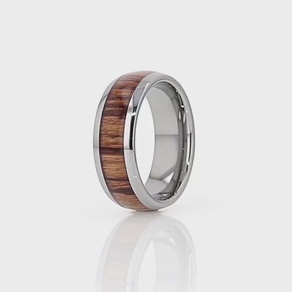 Exotic, elegant, and strong is the combination this wedding band offers. With its Zebra wood inlay, it enables you to break from the traditional wedding rings. Other than being the ideal piece to have your spouse slide on your finger on your momentous occasion, it will serve as a lasting statement accessory in your wardrobe for years to come. The wood inlay gives it a more exciting quality not found in plain rings. It's a great choice if you're a man who loves adventure and likes having a piece of nature on you. Let it express the spontaneity and eccentricity you would love in your union. The earthy tone of this nuptial band makes it unique by giving it a more personalized feel that says a lot about your sense of style. Its domed design is an assurance of comfort. You can trust Tungsten carbide to look as vibrant as ever even after your twentieth wedding anniversary. It's the ideal representation of a timeless and long-standing union.