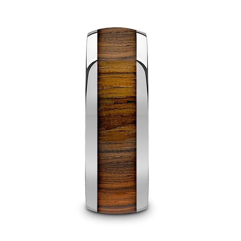 Tungsten Men's Wedding Band with Zebra Wood Inlay