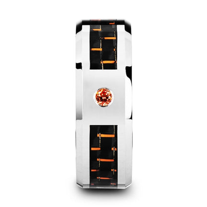 Tungsten Wedding Band with Black & Orange Carbon Fiber and Padparadscha