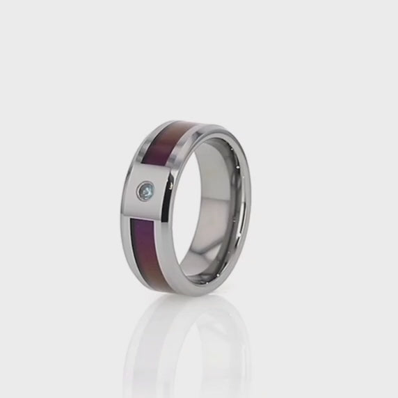 - Material: Tungsten carbide, Blue & Purple Color Changing Inlay