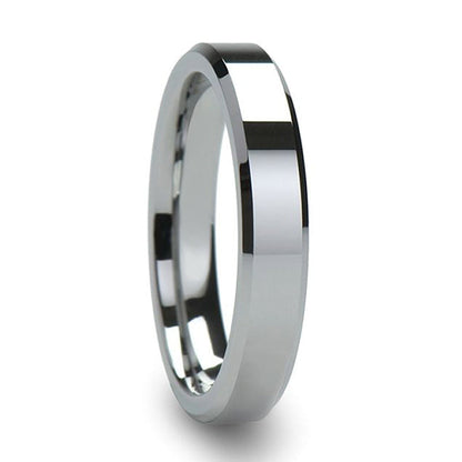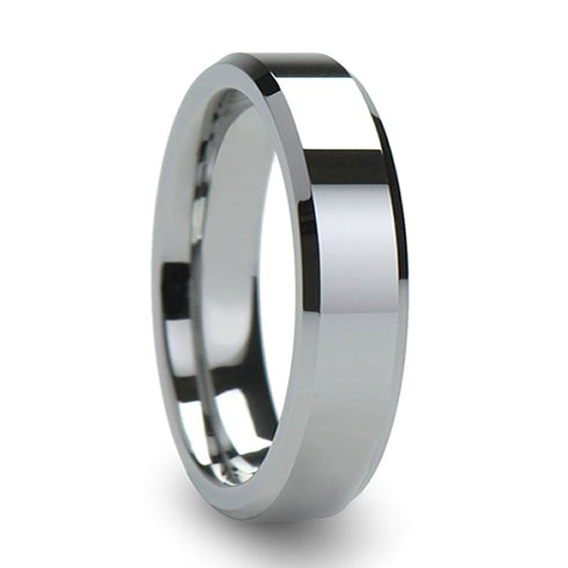 Have you ever looked out over the perfect glass surface of a pond or lake at the break of day? Just before the sun breaks over the horizon, the placid crystal of the water is at peace with the world around it, in unison with the trees and skyline reflecting over it, much like the glimmering surface of this tungsten ring. The beveled edges add a defining touch to cast a spell over the hearts it aims to bring together as one. May it come to represent and remind you of the endless reflection of love you've brought into one another's lives. Made with a high-quality material that's known for its durability, scratch-resistance, and long-lasting shine, this ring is the perfect choice for your special day. It is designed to withstand the test of time and stand up to the wear and tear of everyday life, so you can be sure that it will always look as good as new. With a timeless and elegant design, this band is the perfect way to show your commitment to each other, and it's sure to turn heads wherever you go. It's perfect for those who want a ring that's both beautiful and practical, making it an ideal gift for your loved one.