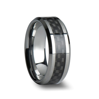 Tungsten Women's Wedding Band with Black Carbon Fiber Inlay
