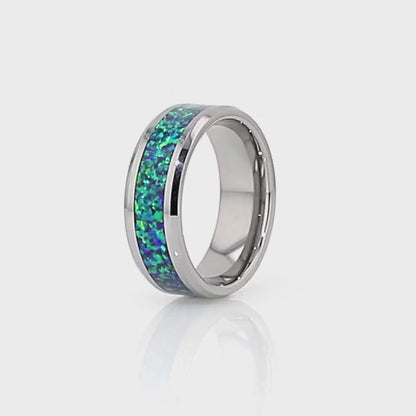 Tungsten Women's Wedding Band with Green & Blue Opal Inlay
