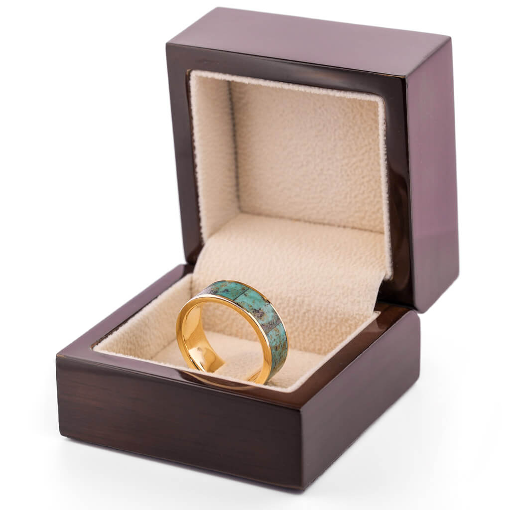 Turquoise Inlay 14k Yellow Gold Men's Wedding Band