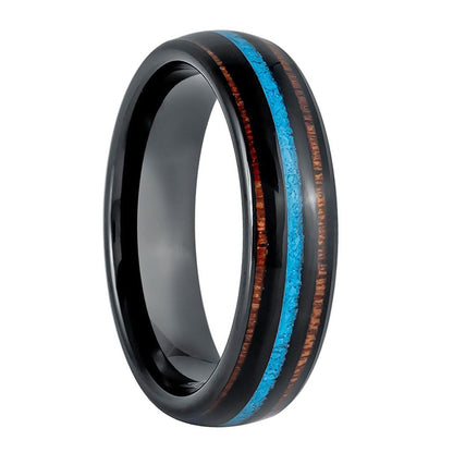 Turquoise & Koa Wood Inlay Black Tungsten Men's Wedding Band
