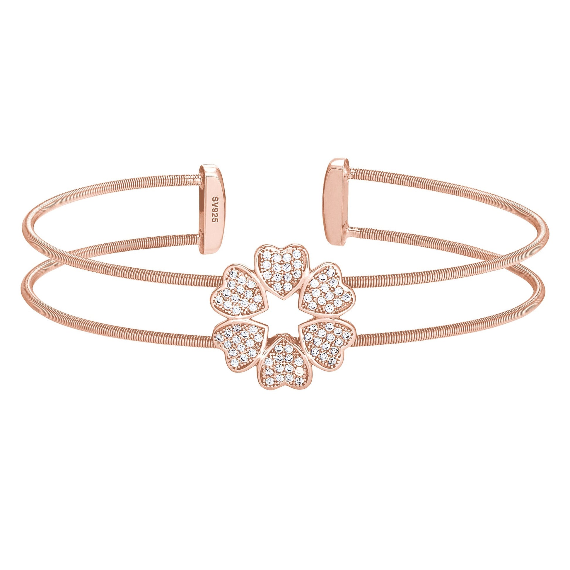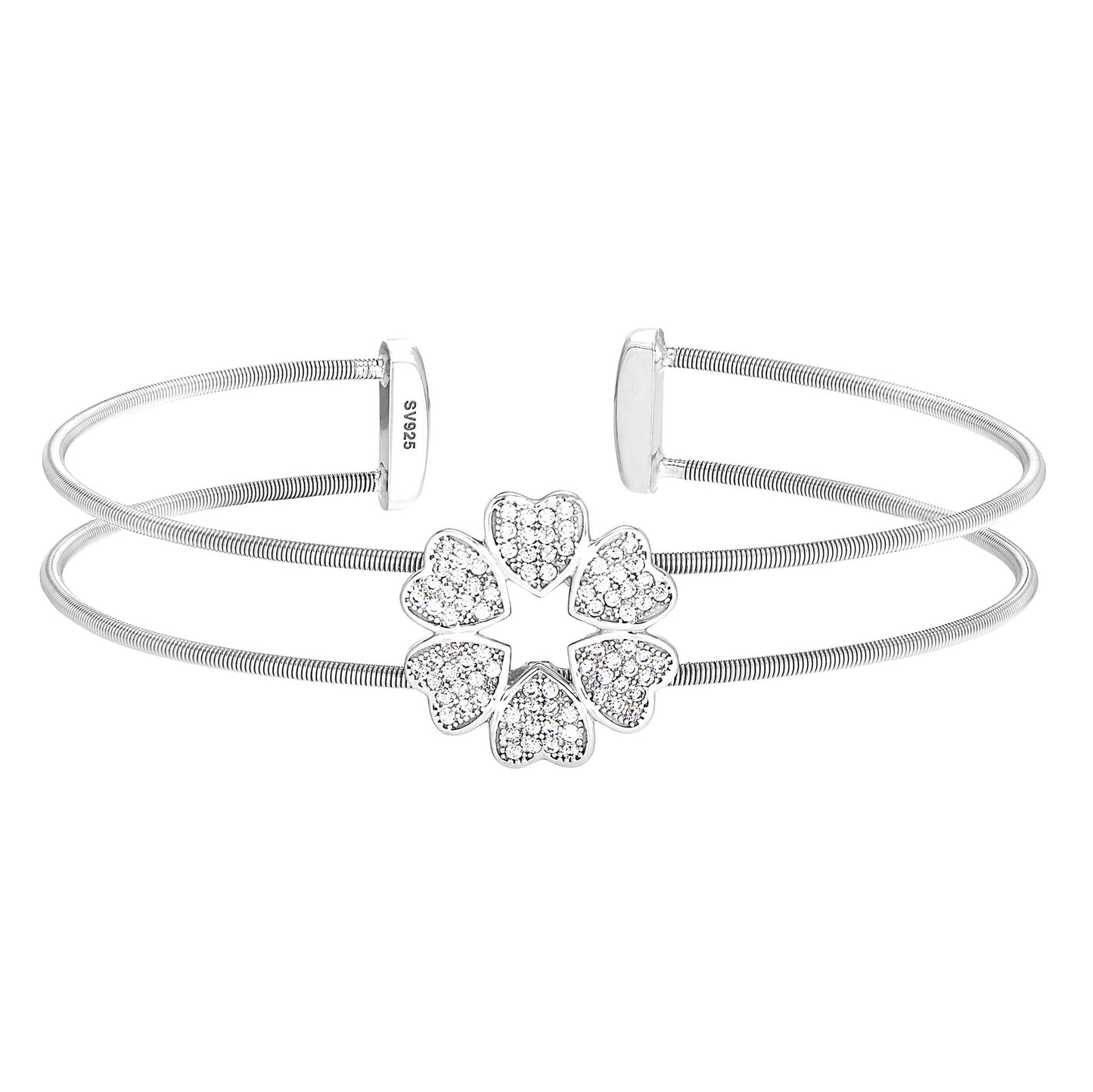 Heart Clover Bracelet with Simulated Diamonds