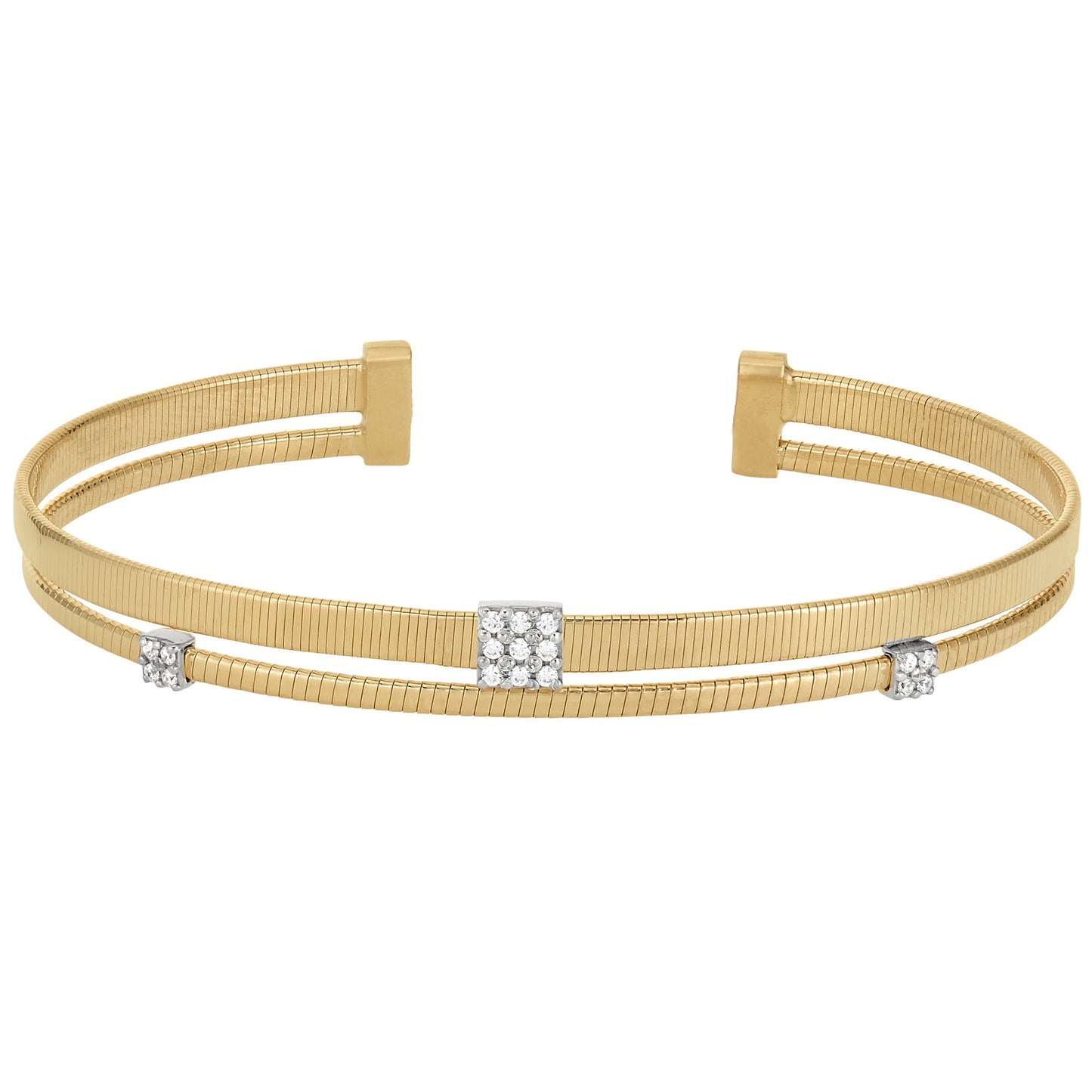 Get ready to dazzle with these two cable bracelets with square simulated diamonds! These bracelets are perfect for adding a touch of sparkle to any outfit without going over budget. The simulated diamonds are expertly cut to catch the light and give off a dazzling shine, making them the perfect gift for anyone who loves to shine like a star. Each bracelet comes with two thin yet sturdy cables that are designed to be comfortable and easy to wear. The adjustable clasp ensures a secure fit that won't slip or slide off your wrist, so you can wear them all day long without worry. These two cable bracelets with square simulated diamonds are a great way to elevate any outfit, from casual daytime wear to sophisticated evening attire. So why settle for boring when you can add some sparkle to your life? Order yours today and get ready to shine like a star.