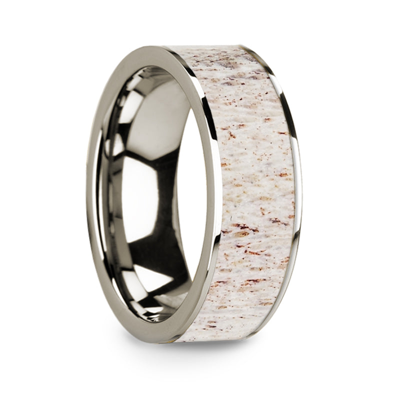 White Deer Antler Inlay 14k White Gold Men's Wedding Band