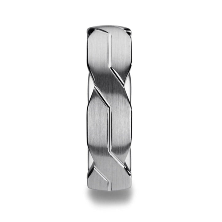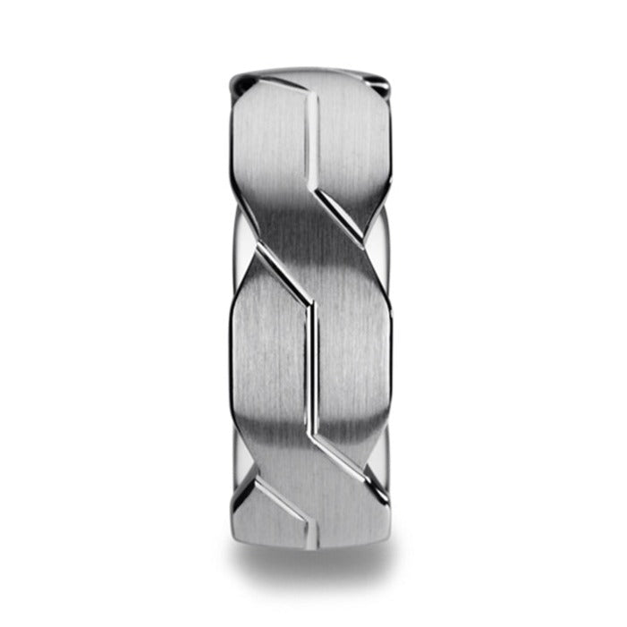 “Forever” is the very first word that will come into mind when looking at this striking ring. If you are looking for a product that will last as long as your love, look no further. Designed with exclusive white tungsten, the interloping design of this ring will surely to demonstrate your infinite love. In addition to being stylishly crafted, the tungsten carbide men's ring is fashioned to be scratch, ding, dent, and damage resistant. This ring screams creative and matchless by allowing for personalization through etching. Demonstrate your long lasting love for your special one with this looping this infinity band.