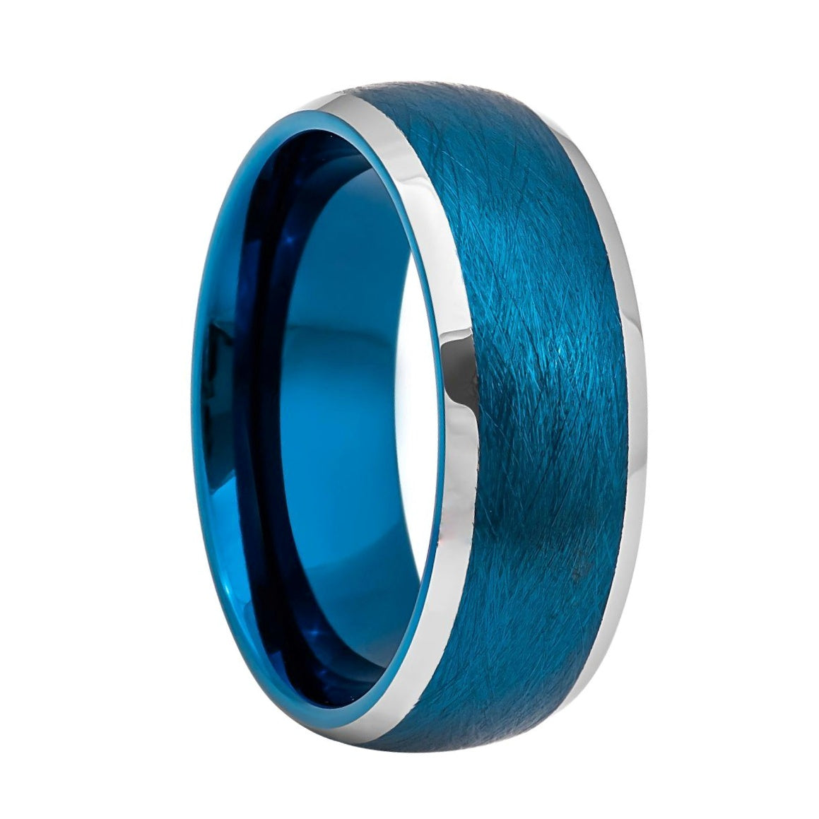 Wire Brushed Blue Tungsten Men's Wedding Band