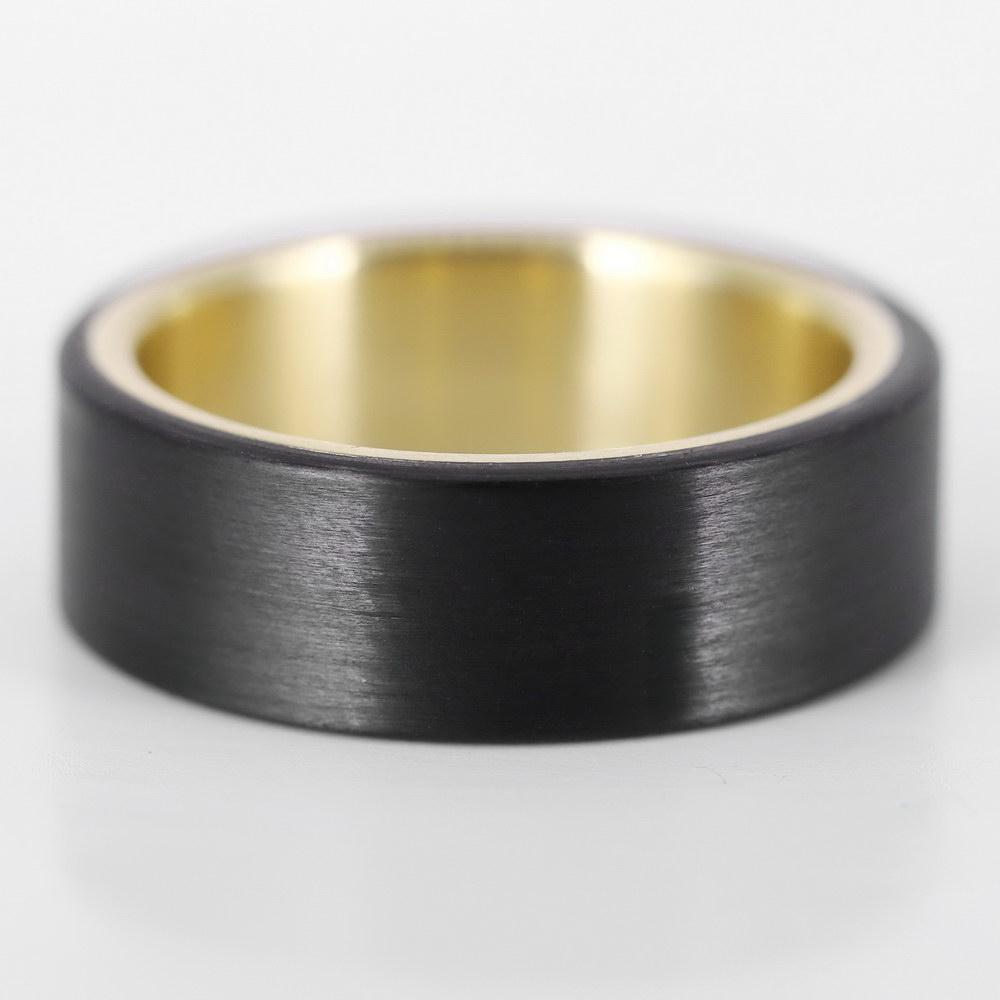 Sleek and lustrous, this carbon fiber wedding band is built tough and finished in a stunning black texture. Carbon fiber is a stylish yet durable material that will stand the test of time. Its lightweight design and precise clean lines make this piece the perfect wedding band for a modern groom. The rich yellow gold contrasts beautifully with the interesting texture of carbon fiber to make a real statement, while the interior of the ring is crafted with comfort in mind. Very few, if any, wedding bands can truly match the undeniable elegance of this piece. But the sophisticated look of this ring isn't the only reason it's a one-of-a-kind masterpiece. Carbon fiber is also scratch-resistant, a big selling point for men who work a lot with their hands. This band is an unexpected choice that will be the center of attention wherever you go and an excellent pick for a groom who isn't afraid to stand out.