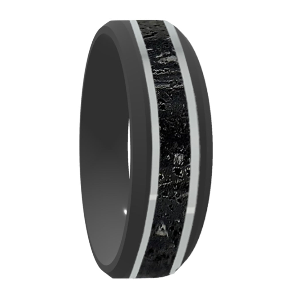 Zirconium Wedding Band with Lava Rock & Sterling Silver Inlays